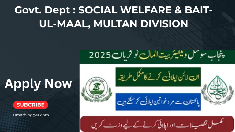 Govt. Dept : SOCIAL WELFARE & BAIT-UL-MAAL, MULTAN DIVISION Apply Now